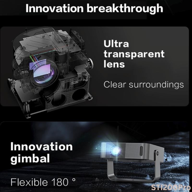 Smart Projector Ultra HD 1080P 8500 Lumens Electric Focus STI200Pro Bluetooth HDMI USB AV Audio AI Camera Android 12 Sup