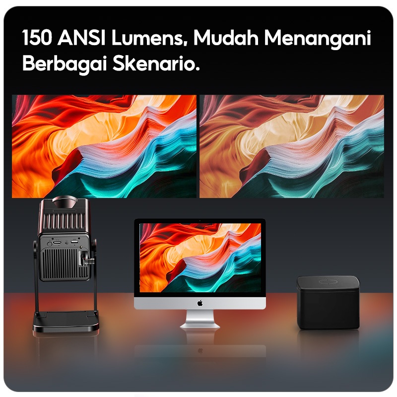 OFO Smart Proyektor Mini Android Portable HD LCD TV 4k Lumens,Auto Keystone,720P