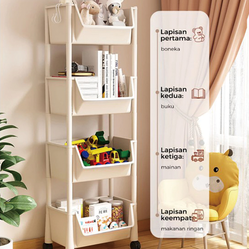 AIMILO RAK SUSUN SERBAGUNA KECIL RAK BUKU SUSUN TEMPAT RAK BUKU ANAK PORTABLE RODA RAK TOY STORAGE RAK SUSUN