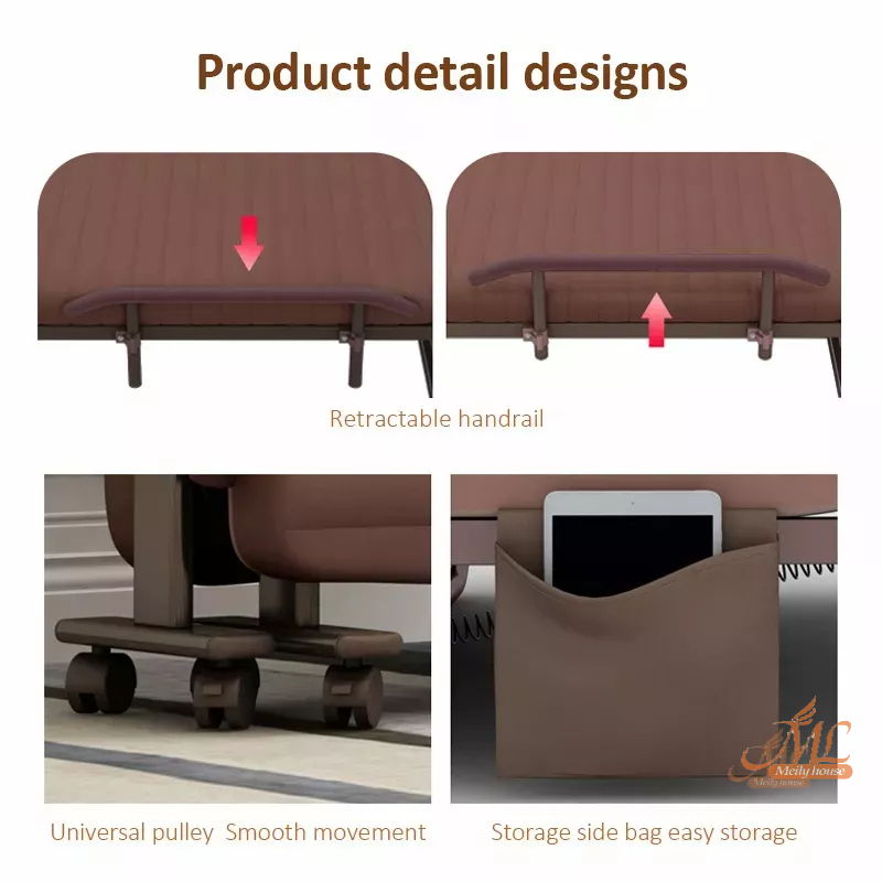 TEMPAT TIDUR LIPAT PORTABLE RANJANG LIPAT MULTIFUNGSI FOLDING BED DENGAN SANDARAN TANGAN RODA DAN