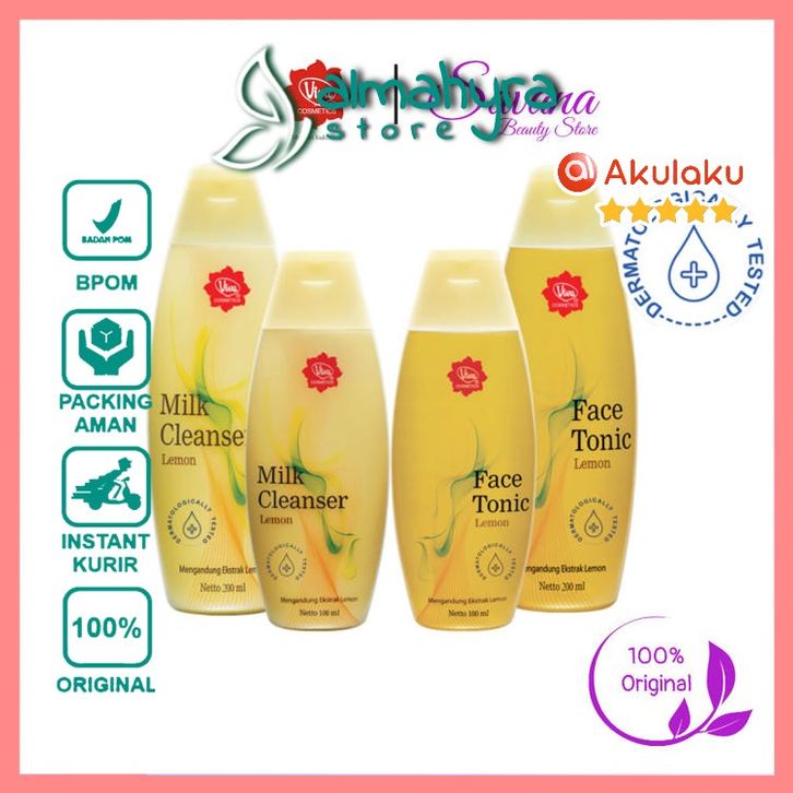 VIVA Milk Cleanser Mengurangi Minyak & Face Tonic Lemon |100 Ml & 200 Ml / almahyra store / original / skincare kosmetik
