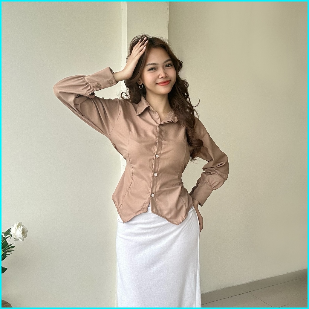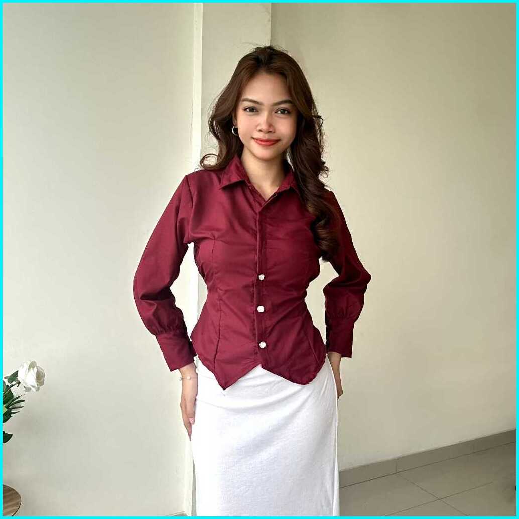 Rx Fashion - Shanju Blouse Tali Belakang Atasan Shirt Kemeja Kancing Kantor -pn