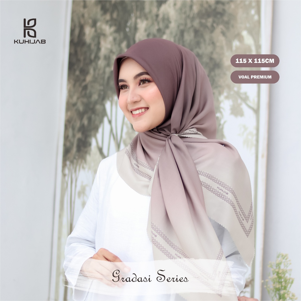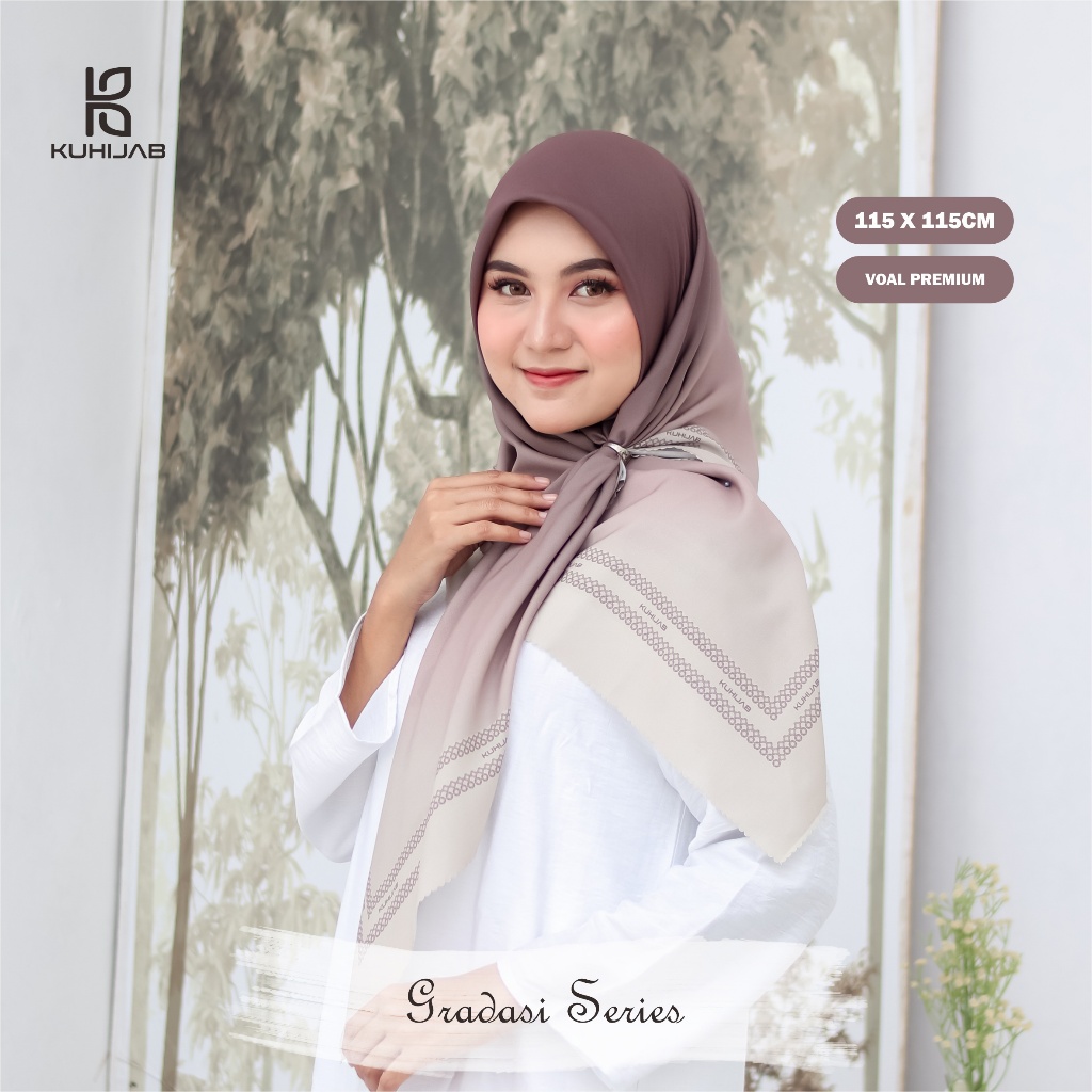 KUHIJAB - Hijab Voal Motif Kerudung Segi Empat Jilbab Printing Sublime 115X115cm Gradasi Series