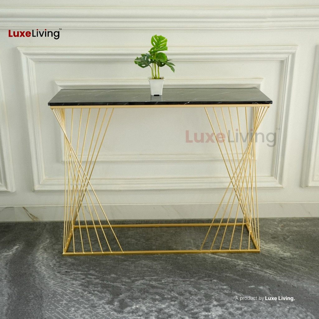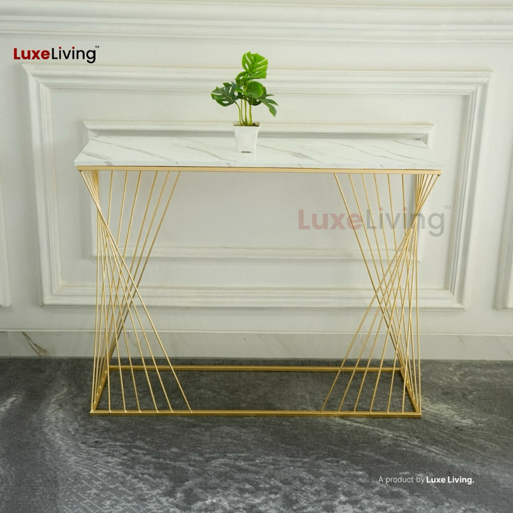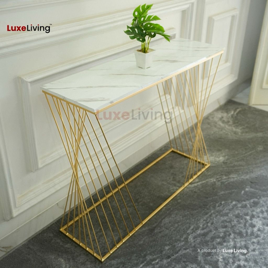 MEJA CONSOLE RUANG TAMU MINIMALIS DISPLAY HPL MOTIF MARMER LIUK LUXE LIVING