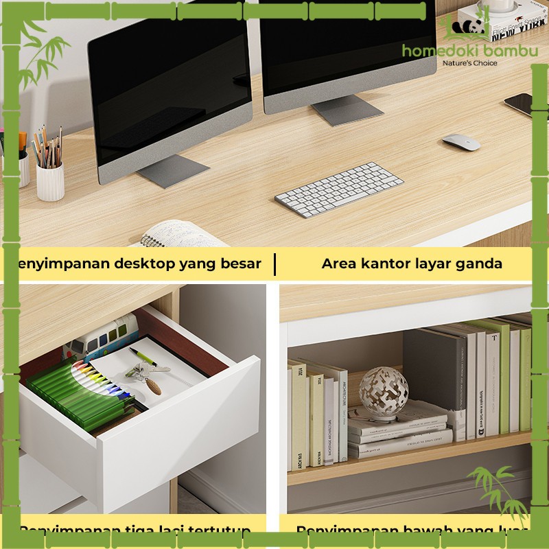 HOMEDOKI BAMBU-MEJA KANTOR / MEJA KOMPUTER / MEJA KERJA MINIMALIS / 120CM MEJA BELAJAR / MEJA KANTOR DENGAN LACI