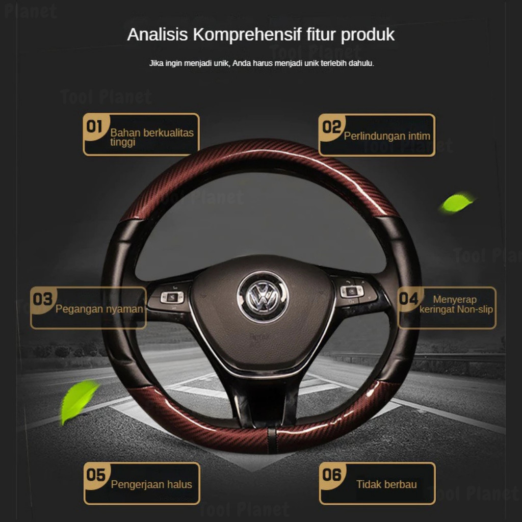 Tool Planet (Garansi 1 Tahun) Cover Stir Mobil/Universal Sarung Setir Mobil Racing 37-38CM Avanza Serat kulit Elastis Co