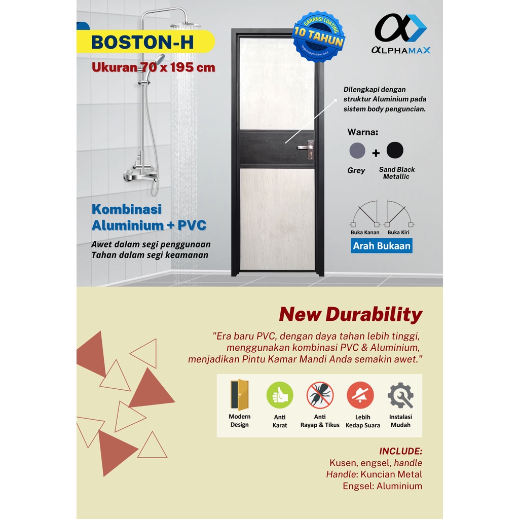 ALPHAMAX Boston - H Pintu Rumah Pintu Kamar Mandi Pintu Gudang Pintu PVC + Aluminium 70 x 195 cm
