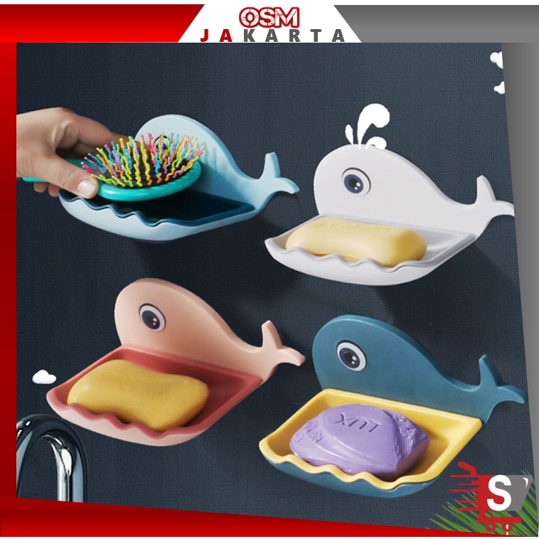 OSM JKT H5600 Tempat Rak Sabun / Tempat Sabun Batang Tempel Model Ikan Paus / Rak Sabun Kamar Mandi Tempel / Wadah Sabun