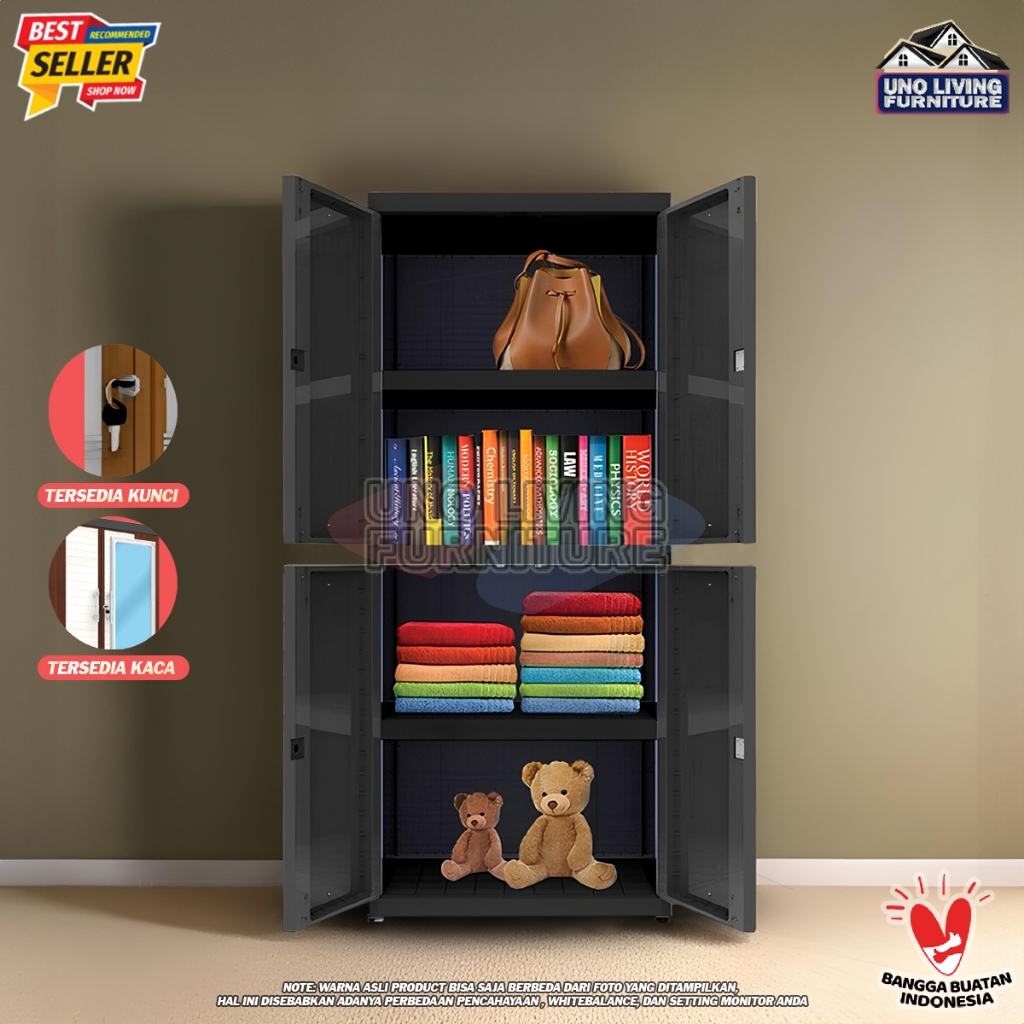 JUMBO LEMARI PAKAIAN PLASTIK NAIBA MSC FIT DENGAN CERMIN LEMARI SUSUN 4 MODERN - FULL KUNCI