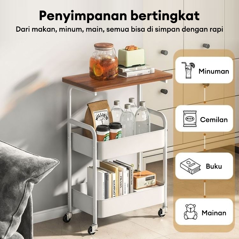 RAK TROLI SUSUN SERBAGUNA RAK DAPUR TROLI DENGAN RODA MEJA SAMPING SOFA TROLI BERGERAK RAK KAMAR MANDI RAK BAJA DENGAN RODA MEJA SAMPING TEMPAT TIDUR PORTABLE RAK 3 LAPISAN DENGAN RODA