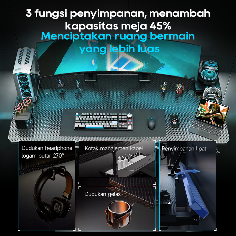 XPANSE MEJA GAMING FIBER KARBON | MEJA KOMPUTER ADJUSTABLE SPLIT-TOP | MEJA KANTOR MINIMALIS UNTUK ESPORT & STREAMING