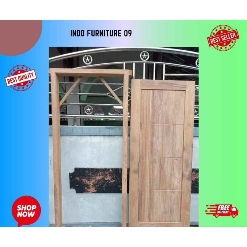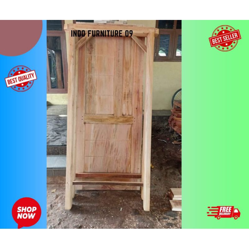 Ready stock daun pintu dan kusen 1set pintu rumah kayu mahoni ukuran pintu 200x80