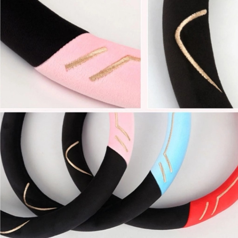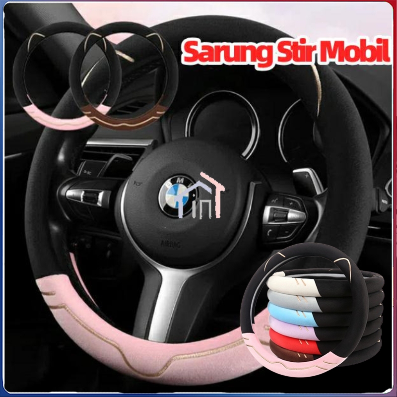 【】38cm Sarung Setir Mobil Cover Stir Mobil Mobil Universal Motif Kucing Lucu Anti Slip Aksesoris Interior Mobil