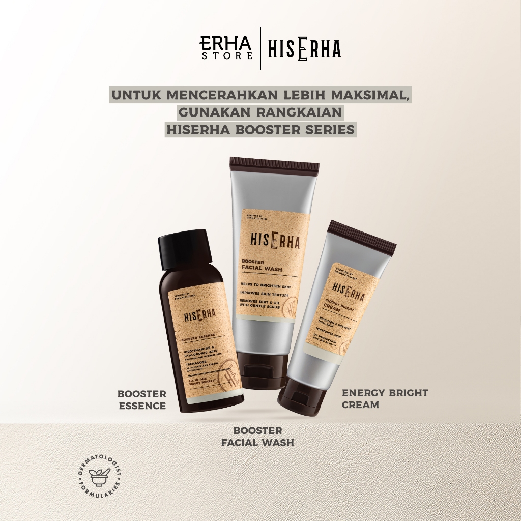 HIS ERHA Paket Facial Wash & Serum Brightening / Pencerah - Set untuk Mencerahkan Wajah Kusam khusus Pria, Melembapkan Wajah, Verified by Dermatologist, Niacinamide, Gentle Scrub, D-Panthenol