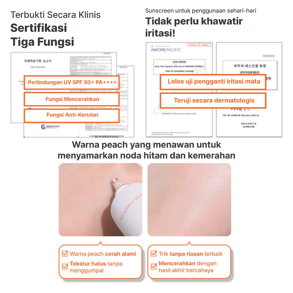 Innisfree Vitamin C Tone Up Sunscreen SPF50+ PA++++ 50ml - Tone Up Sunscreen Mencerahkan Wajah
