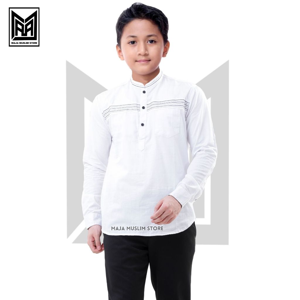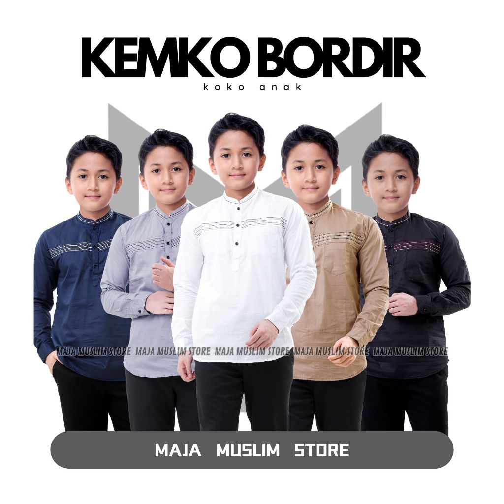 Baju Kemeja Koko Anak Lengan Panjang Kombinasi Bordir Usia 5 sampai 14 tahun