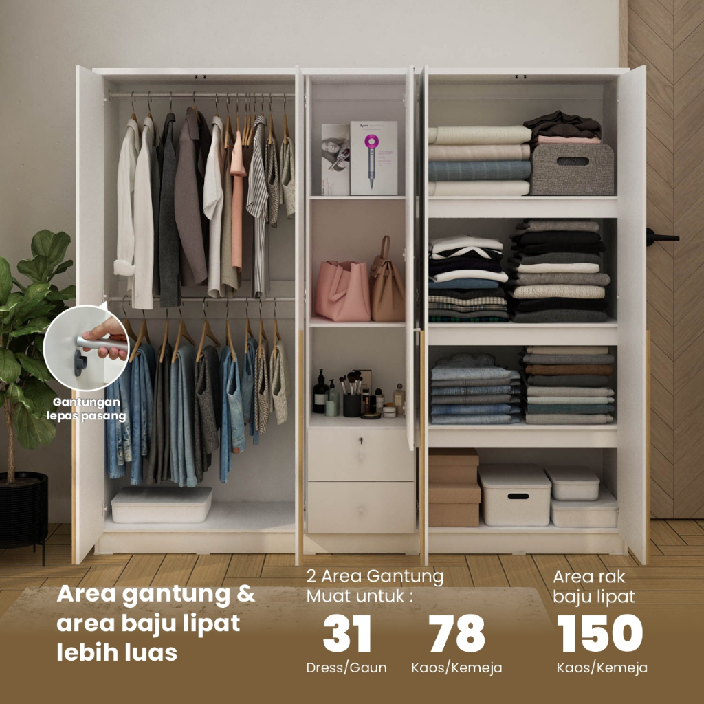 PIRA METROPOLIS - YONA 5P 2DR LEMARI PAKAIAN 5 PINTU DENGAN 2 LACI