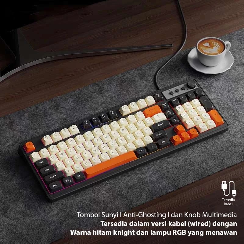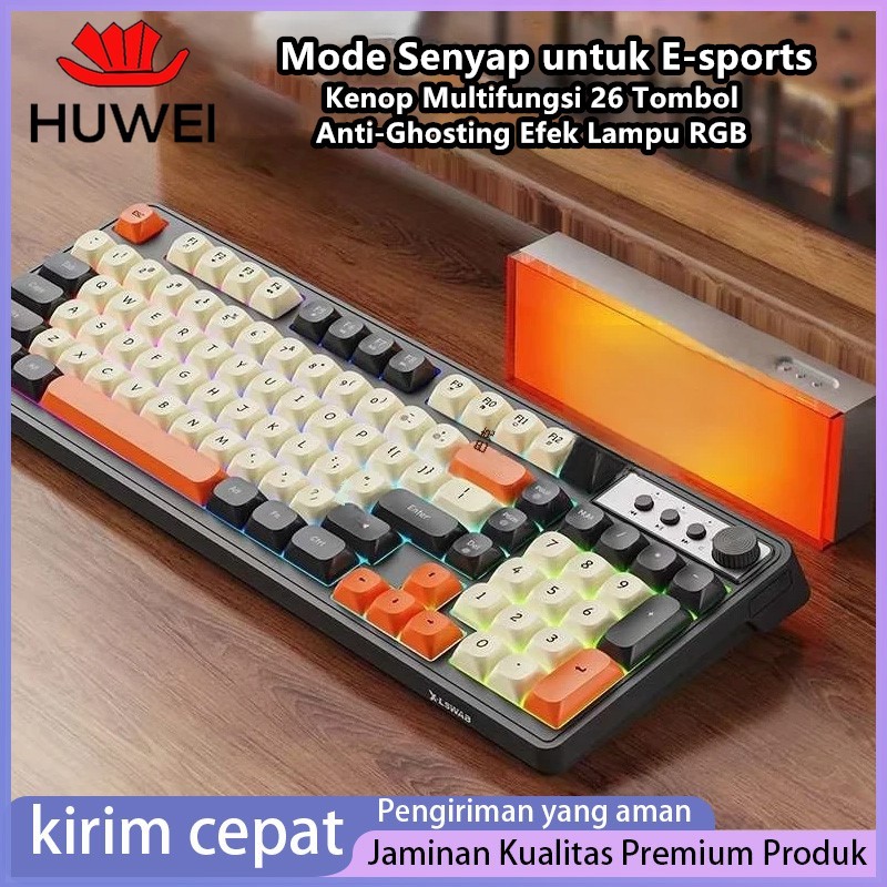 KEYBOARD GAMING MECHANICAL HUWEI K98 E-SPORT JERMAN KABEL SWITCH COKLAT SENYAP DAN NIRKABEL