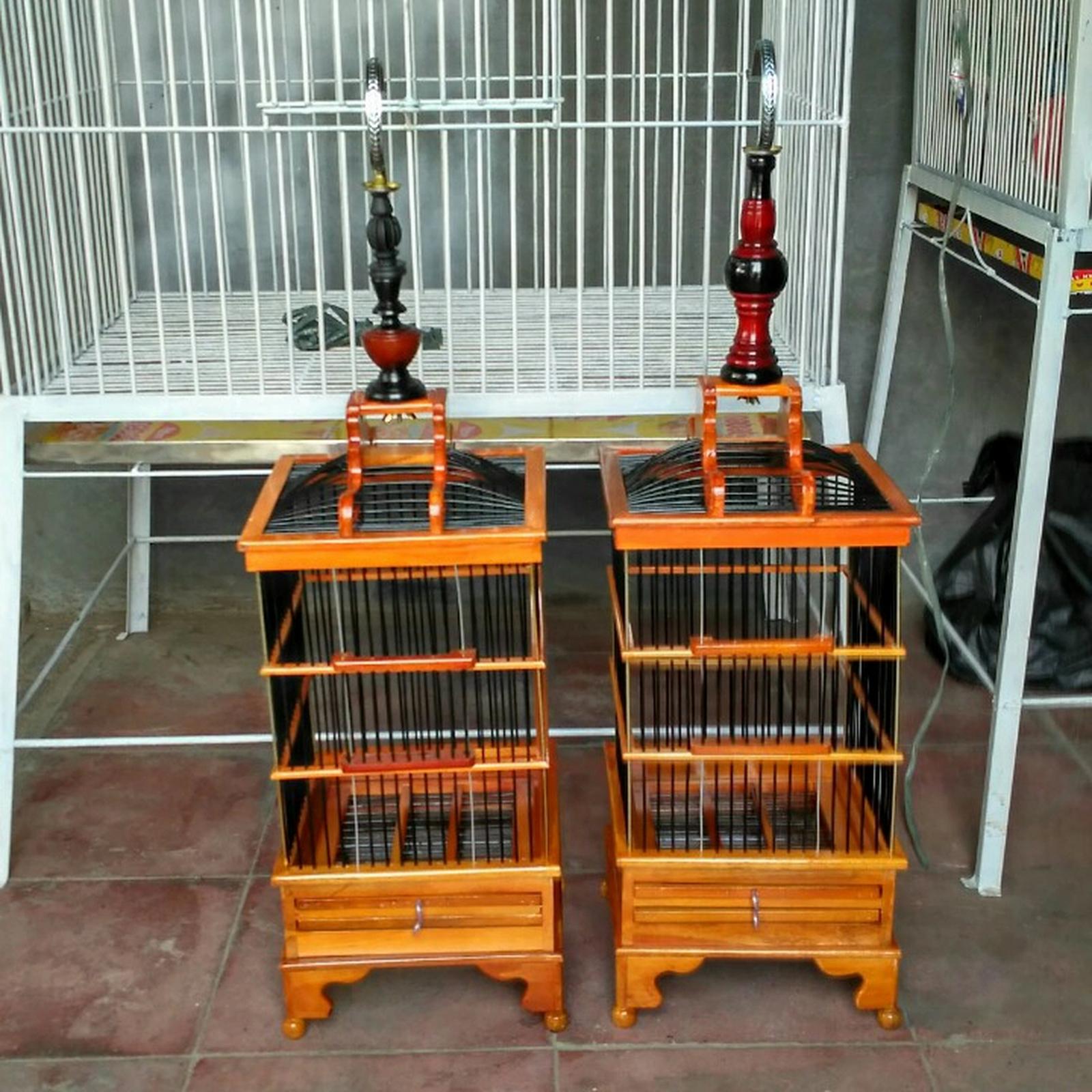 Kandang burung pleci dll kayu jati Permisan melamin mengkilap