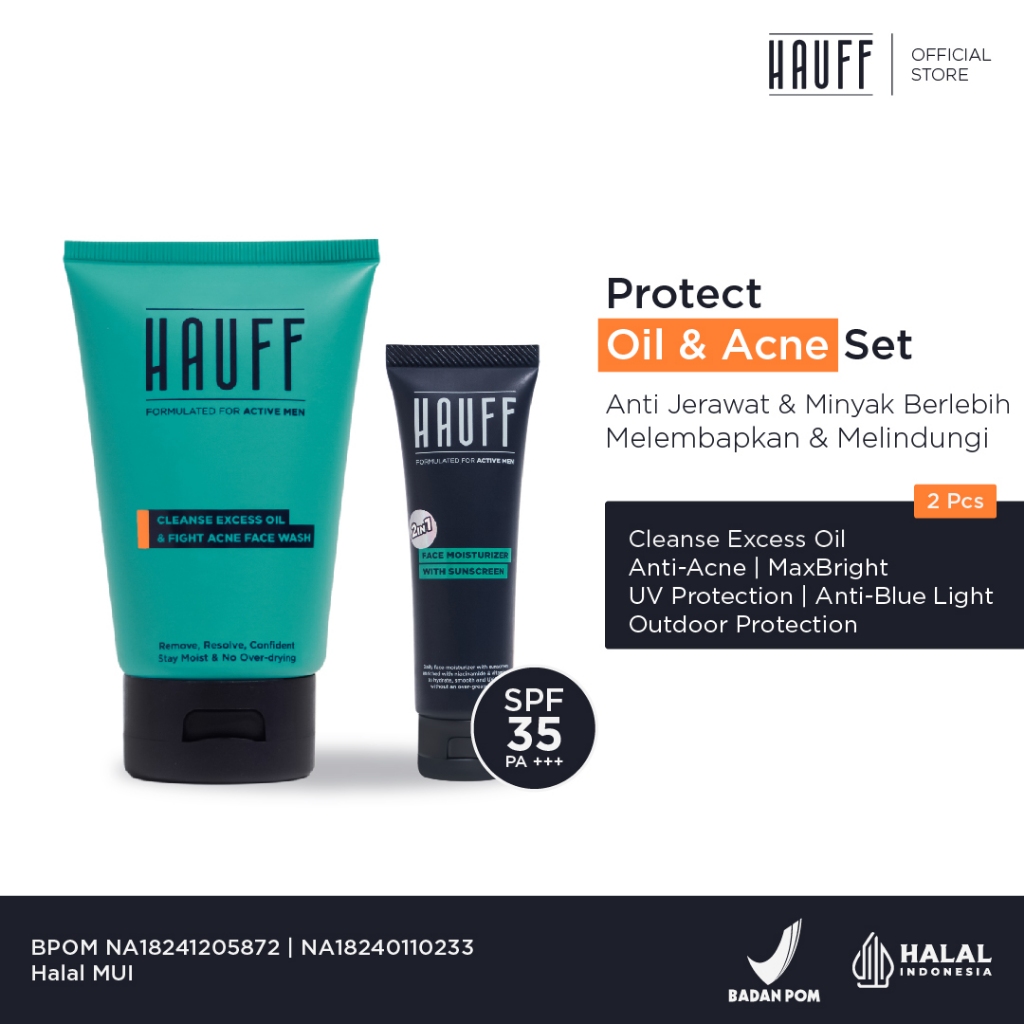HAUFF Protect Oil & Acne Set | Paket Skincare Pria | Anti Jerawat & Minyak Berlebih | SPF 35 PA +++