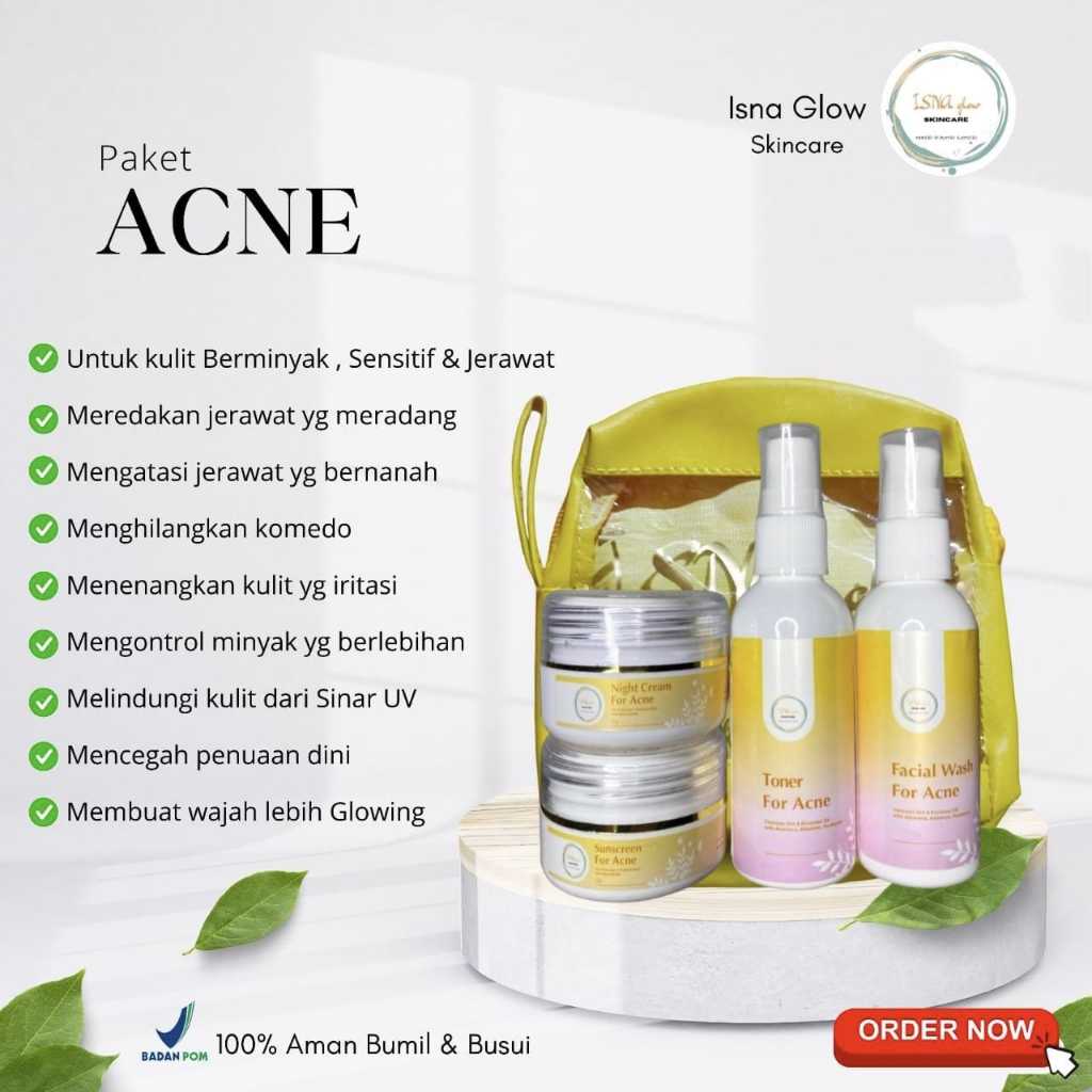 ISNA GLOW Skincare Mencerahkan dan Mengatasi Jerawat Level Up Acne dan Normal Kulit Kusam Berjerawat