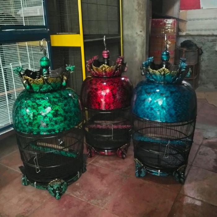 Kandang burung perkutut mahkota merak motif abstrak granit