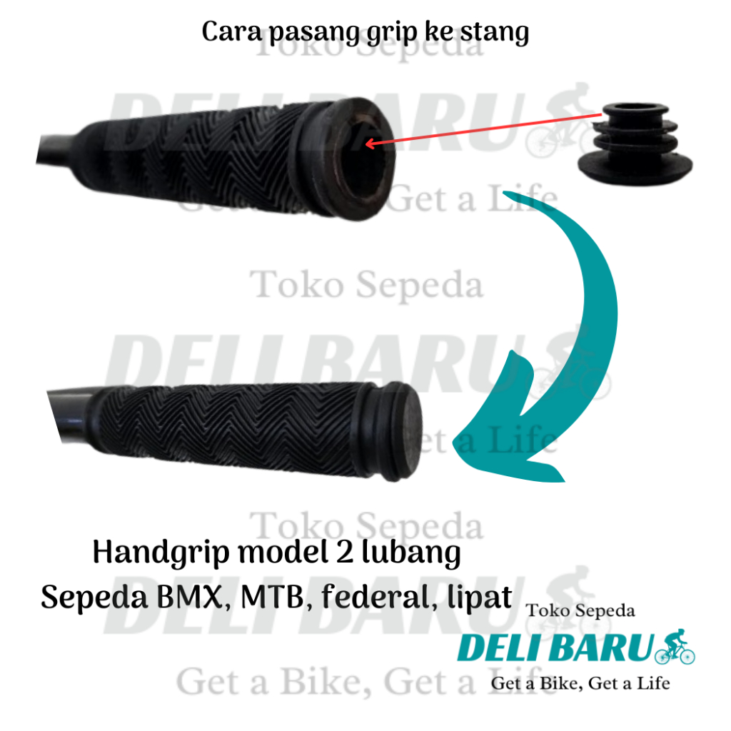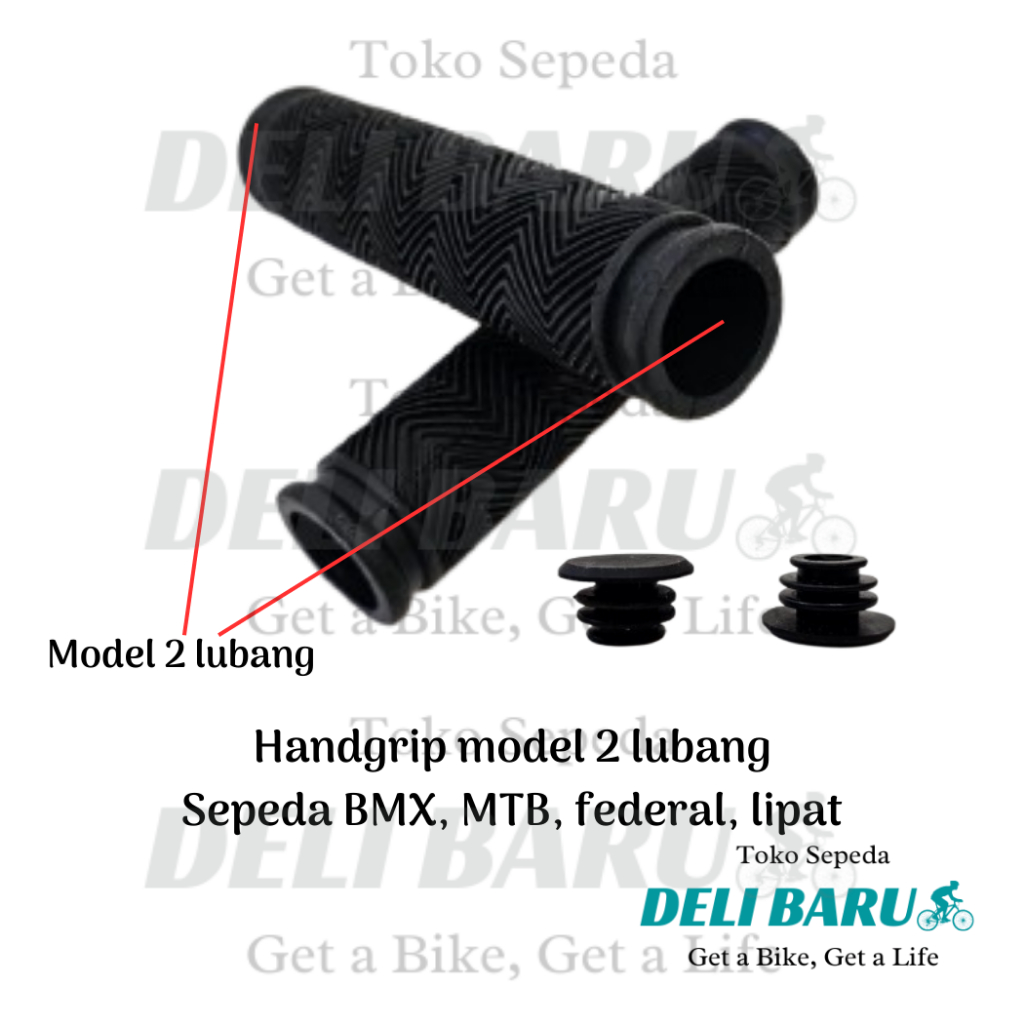Handgrip model 2 lubang sarung stang + tutup hand grip warna hitam hamfat hanpad sepeda anak BMX lipat MTB federal fixie minion universal