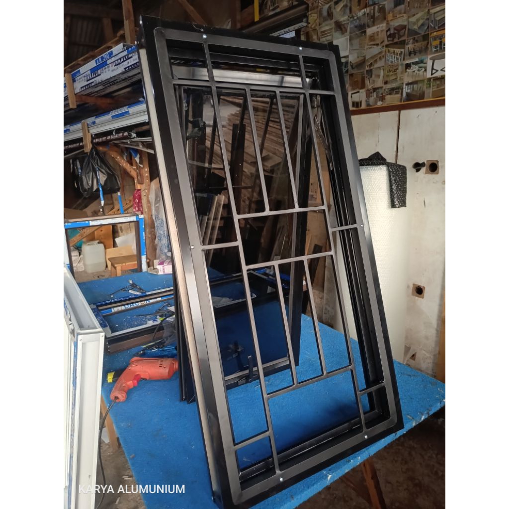 jendela alumunium 3in + teralis uk T100-110-120 x L50 lengkap tinggal pasang free packing kayu