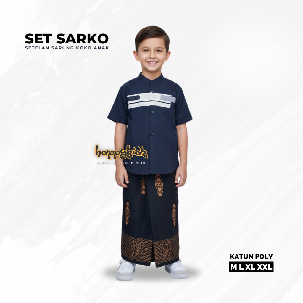 Baju Koko Sarung Anak, Setelan Lebaran Anak Laki-Laki, Bahan Nyaman & Adem Usia 3-12 Tahun