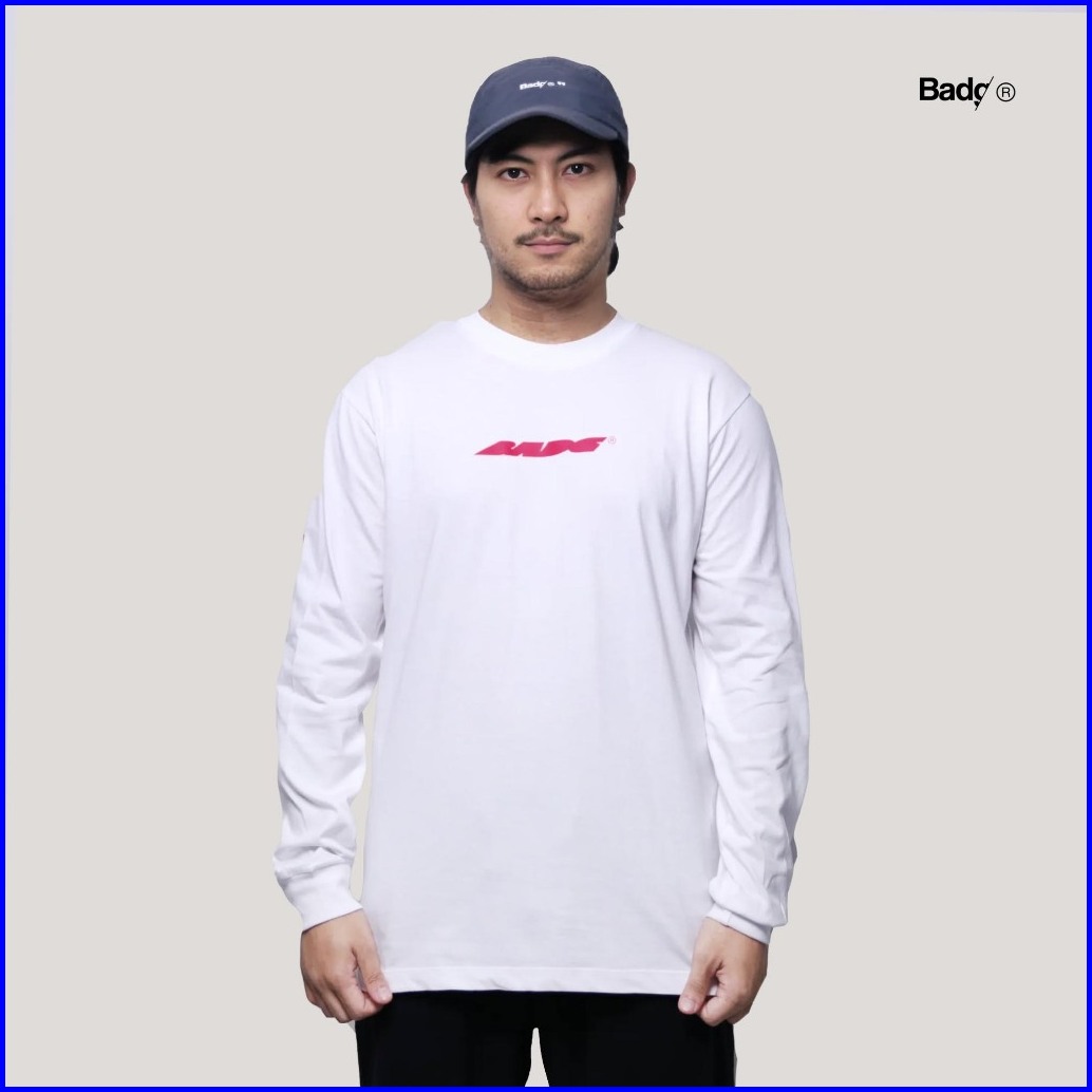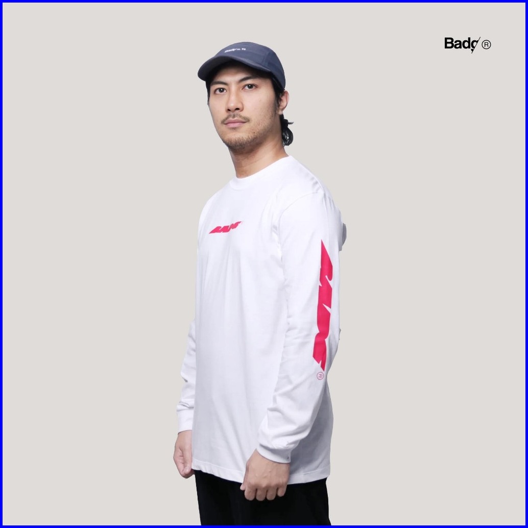 Badger T-shirt Long Sleeve Log Pink - White - Cotton 24s