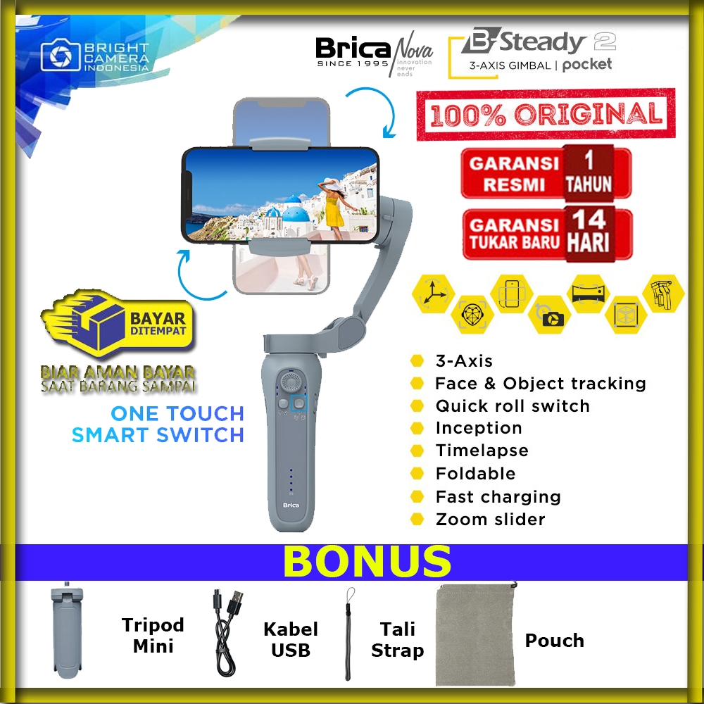Brica Bsteady 2 Pocket Gimbal Stabillizer Smartphone - Bergaransi Resmi 1 Tahun