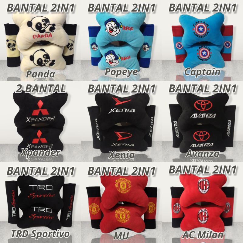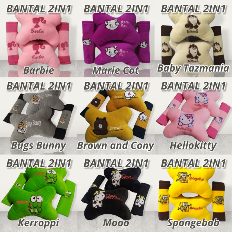 Bantal Mobil 2in1 Headrest Car Set Karakter Kartun Lucu