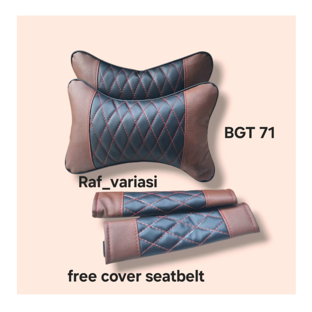Bantal mobil motif garis tengah free cover seatbelt / bantal leher mobil / bantal sandaran kepala mobil / headrest banta