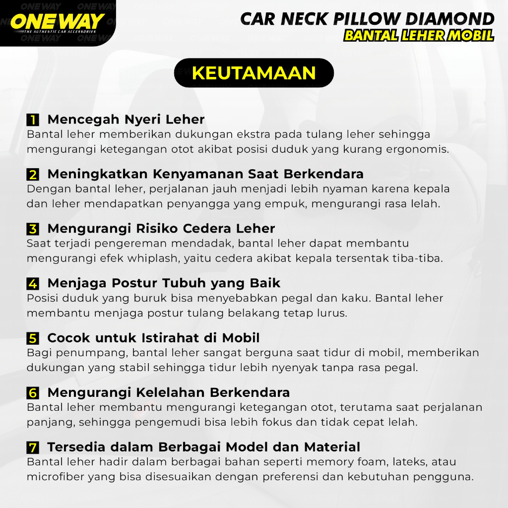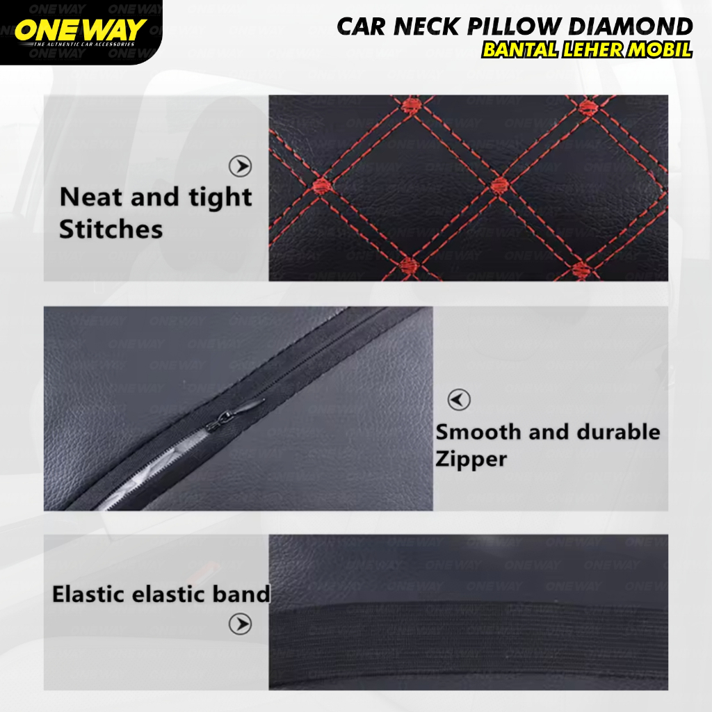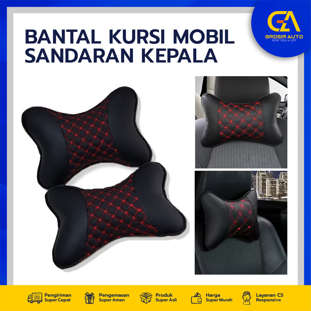 Bantal Mobil Headrest Bantal Leher Sandaran Kepala Jok Mobil Motif Benang Kotak Car Neck Pillow Empuk Dan Nyaman