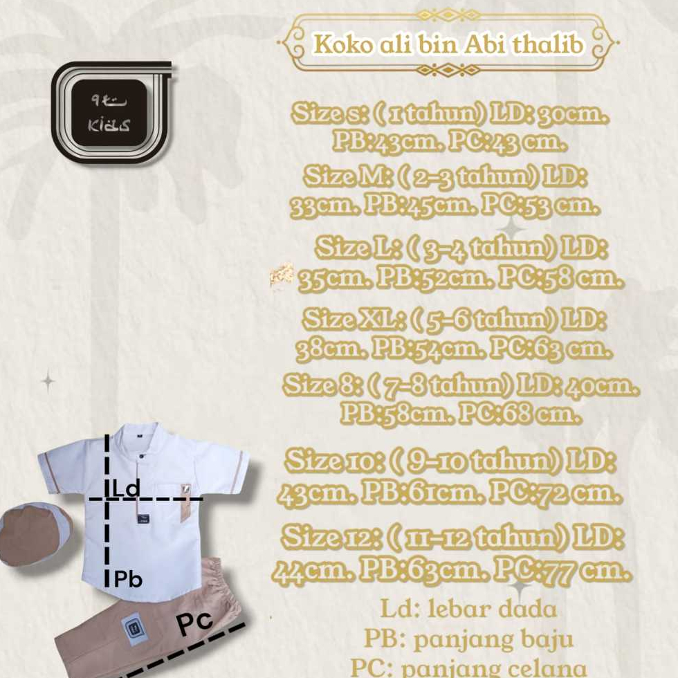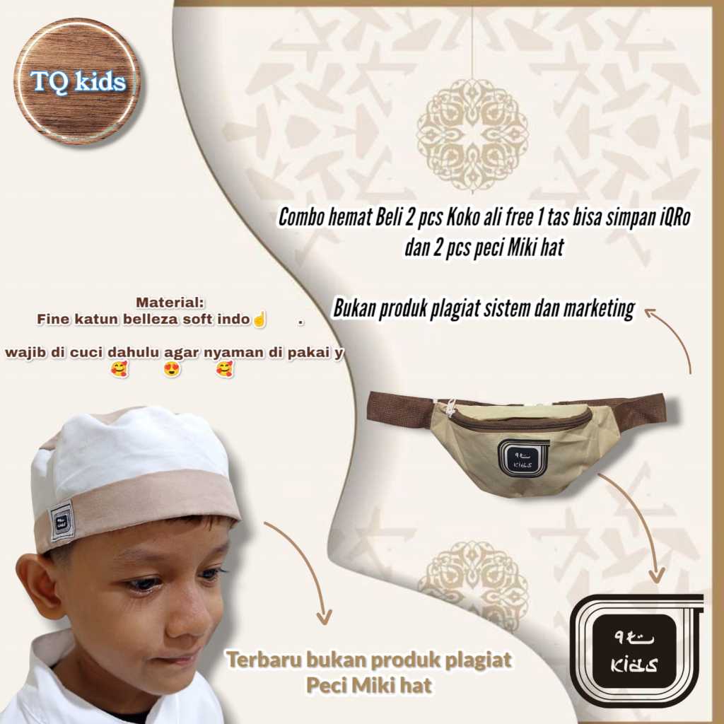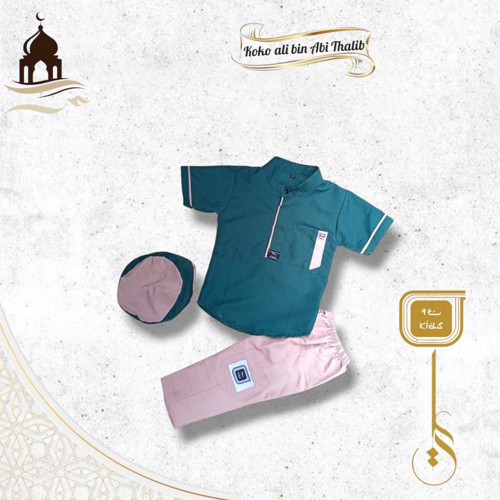(BELI 2 SETEL FREE 1TAS )Setelan baju Celana muslim koko kurta TQ kids anak laki katun Polos usia 1-12 tahun ALI BIN ABI