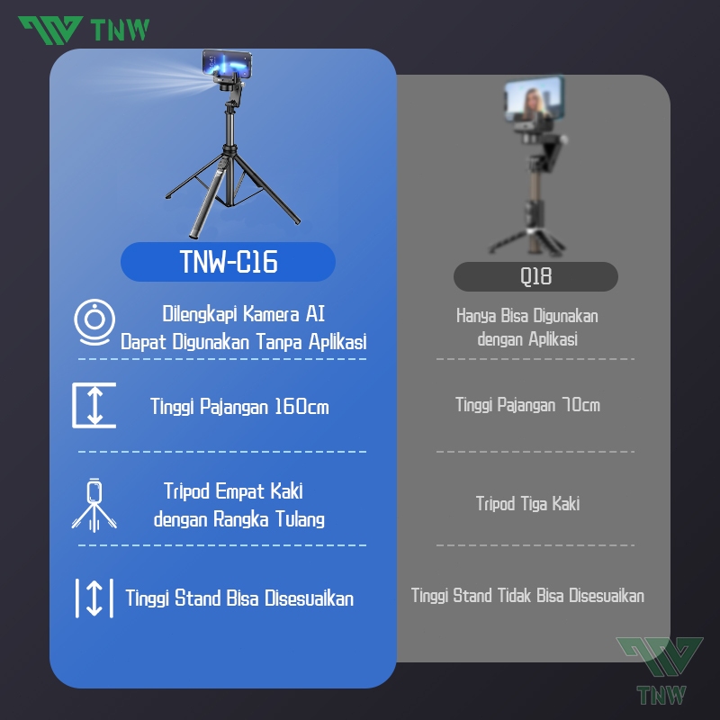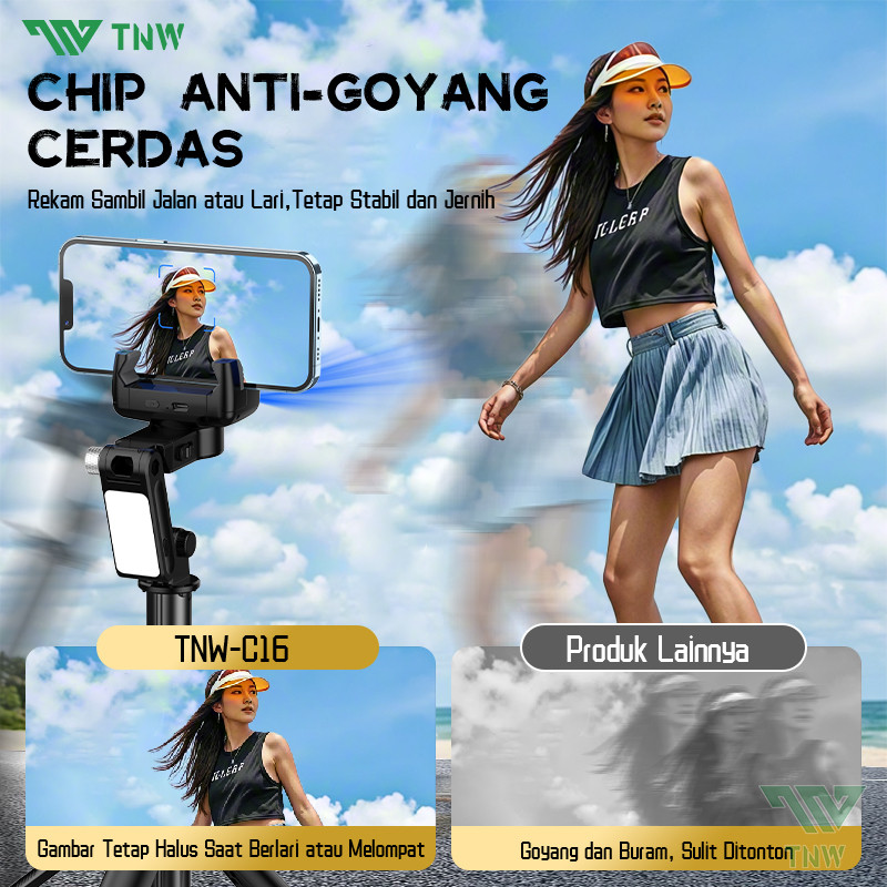 Tnw C16 Multi-Functional Auto Face Tracking Tripod Ai Bluetooth Gimbal Stabilizer 360° Rotation Selfie Stick Tongsis Den