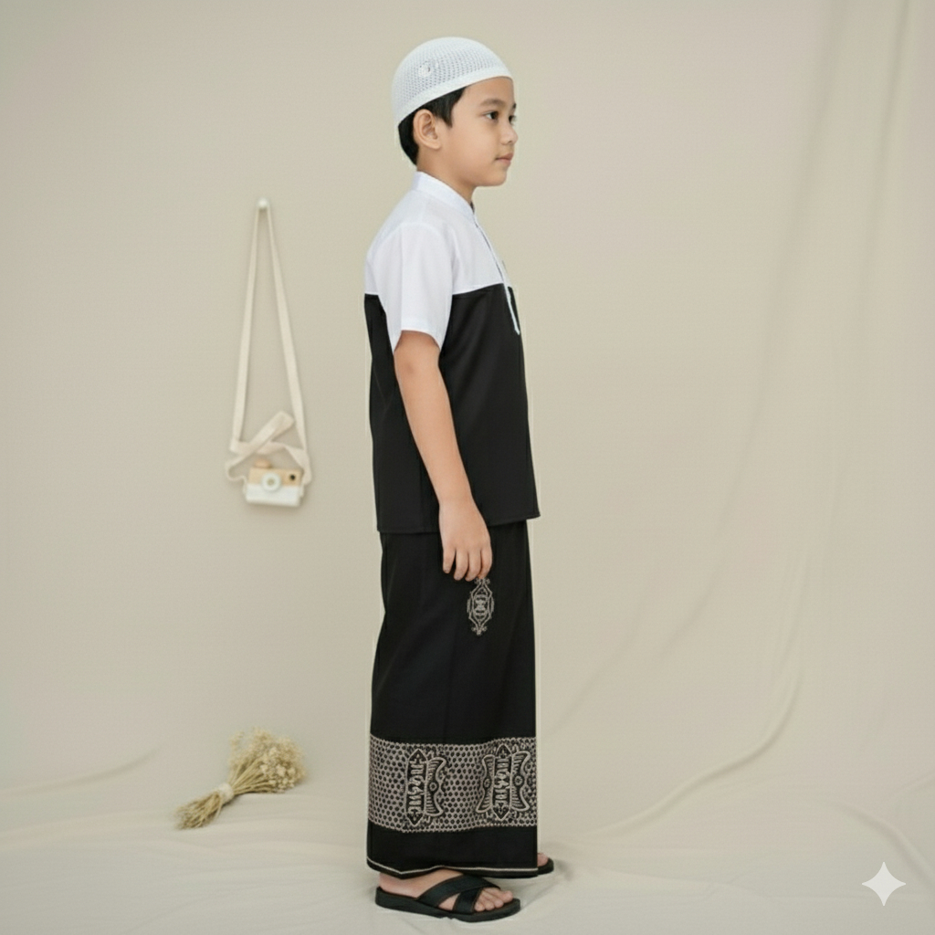 Setelan baju koko anak laki laki sarung peci usia 3-12 tahun kemko anak terbaru sarkoci