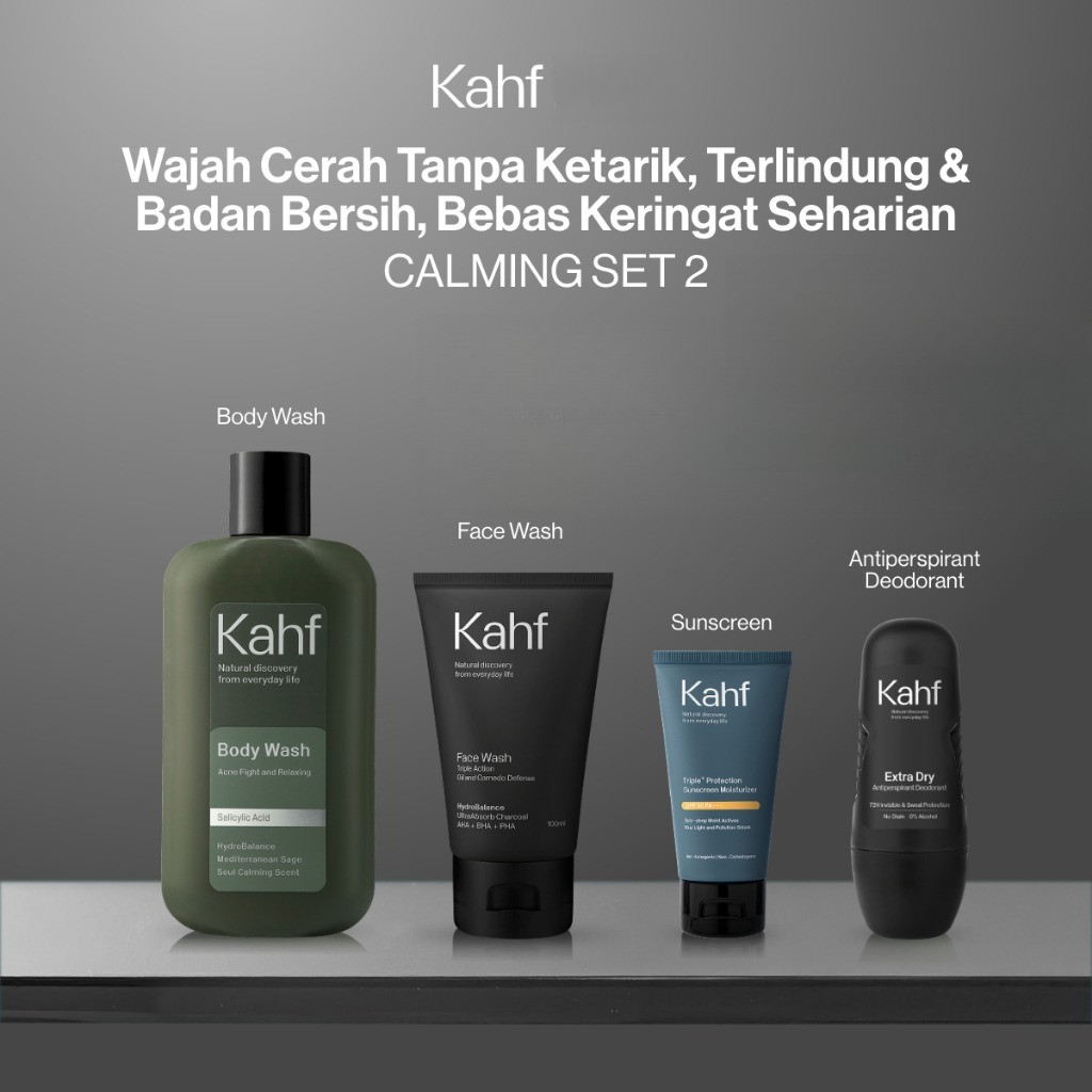 Najmia Ofc Paket KAHF 4IN1 PERAWATAN DAILY USE ESSENTIALS : Paket Personal Care (Face Wash + Sunscreen Moisturizer + Body Wash + Deodorant)