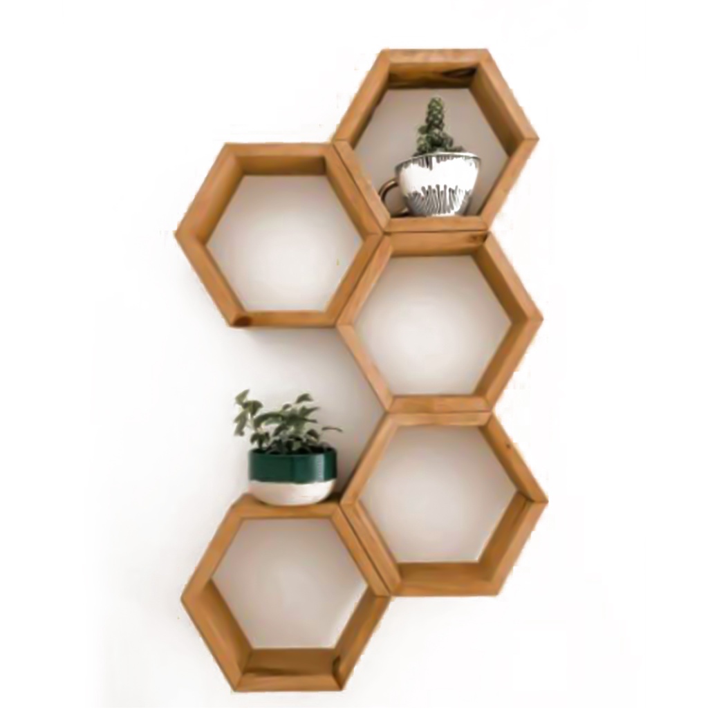 PROMO RAK DINDING HEXAGONAL KAYU 1 PCS-1kg muat 3 lebih hemat ongkir