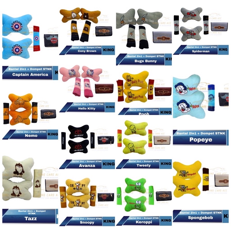 bantal 2 in 1 / sandaran kepala mobil / bantal kepala mobil / bantal leher penyangga motif boneka bola/ asesoris mobil m