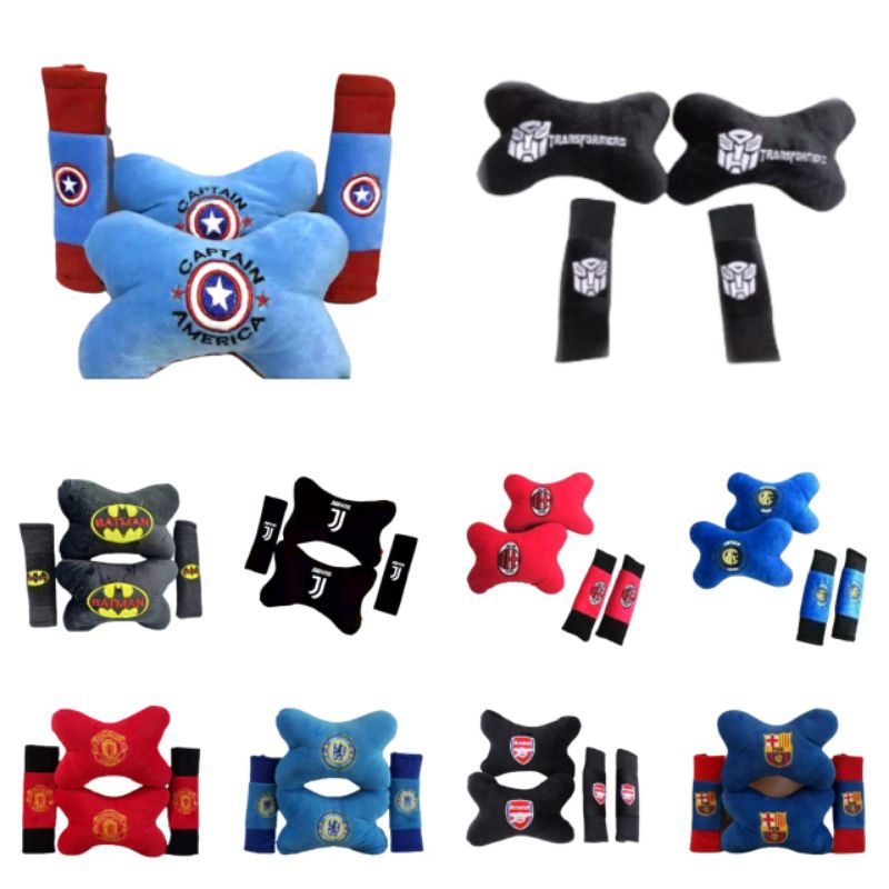 Bantal Mobil Set 2 in 1 Motif Hero Mobil Bantal Kepala Karakter Cartoon 2 in 1 Imut Headrest car Set 2 in 1 Team Klub B