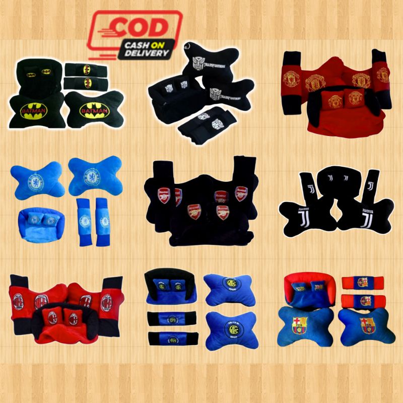 Bantal 3in1 Mobil Set Karakter Hero Bantal Team Sepakbola Headrest Car Set 3in1