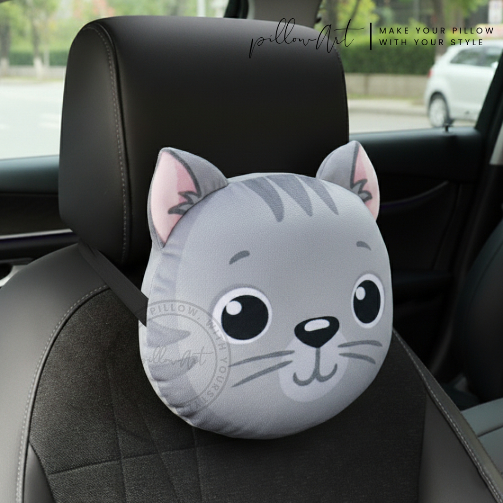 PillowArt Bantal Unik Sandaran Kepala Jok Mobil Motif Hewan - Bantal Headrest Koleksi Lucu ART125