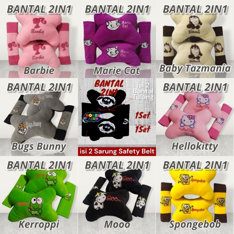 Headrest Set 2in1 Car Set Bantal Mobil 2in1 Car Set Karakter Kartun Lucu