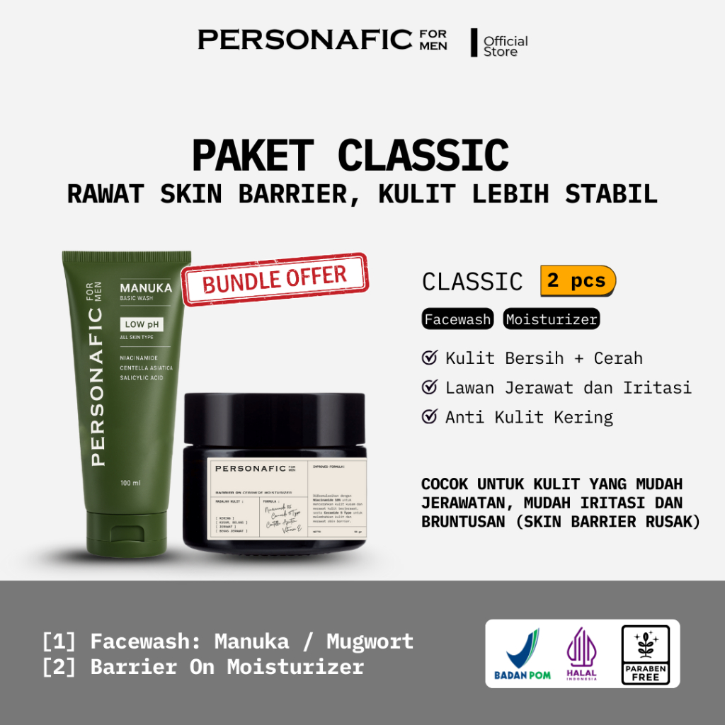 PERSONAFIC Classic Skin Barrier Kit 2-in-1 Face Wash Moisturizer Paket Perawatan Wajah Pria Kulit Kering dan Jerawat