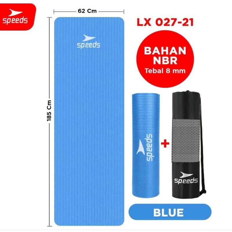 Speeds Matras Yoga Karpet Spons Tikar Olahraga Lantai Free Tas Biru