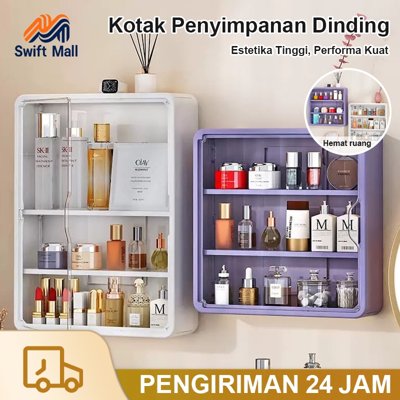 Swift Mall Lemari Penyimpanan Dinding Plastik Serbaguna Rak Kamar Mandi Lemari Penyimpanan Kosmetik Transparan