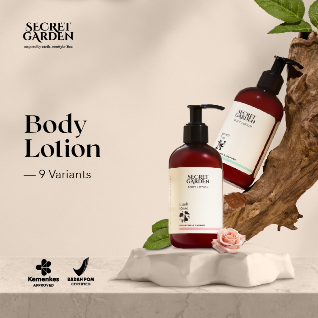 Secret Garden - Body Lotion 250ml | Pelembap Badan With Vitamin E, UV Filter Wangi Alami Tahan Lama Untuk Kulit Kering Mencerahkan Whitening Moisturizer