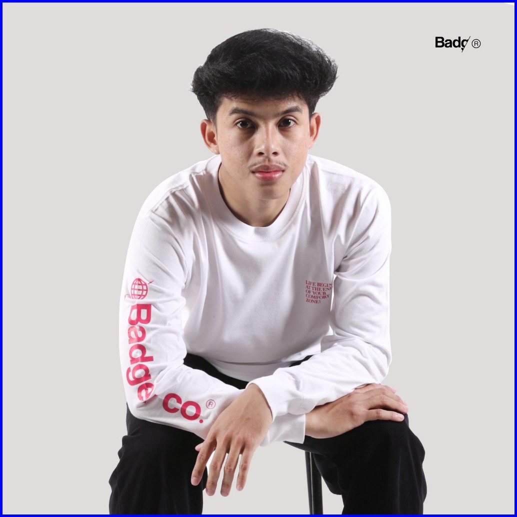 Badger T-shirt Long Sleeve Life Begin White - Cotton 24s