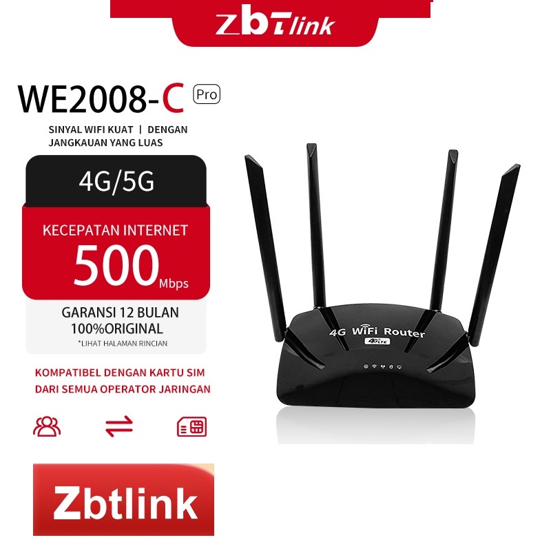 Modem WiFi 4G All Operator ZBT 500Mbps LTE Sim Card Slot 2.4GHz Home Router